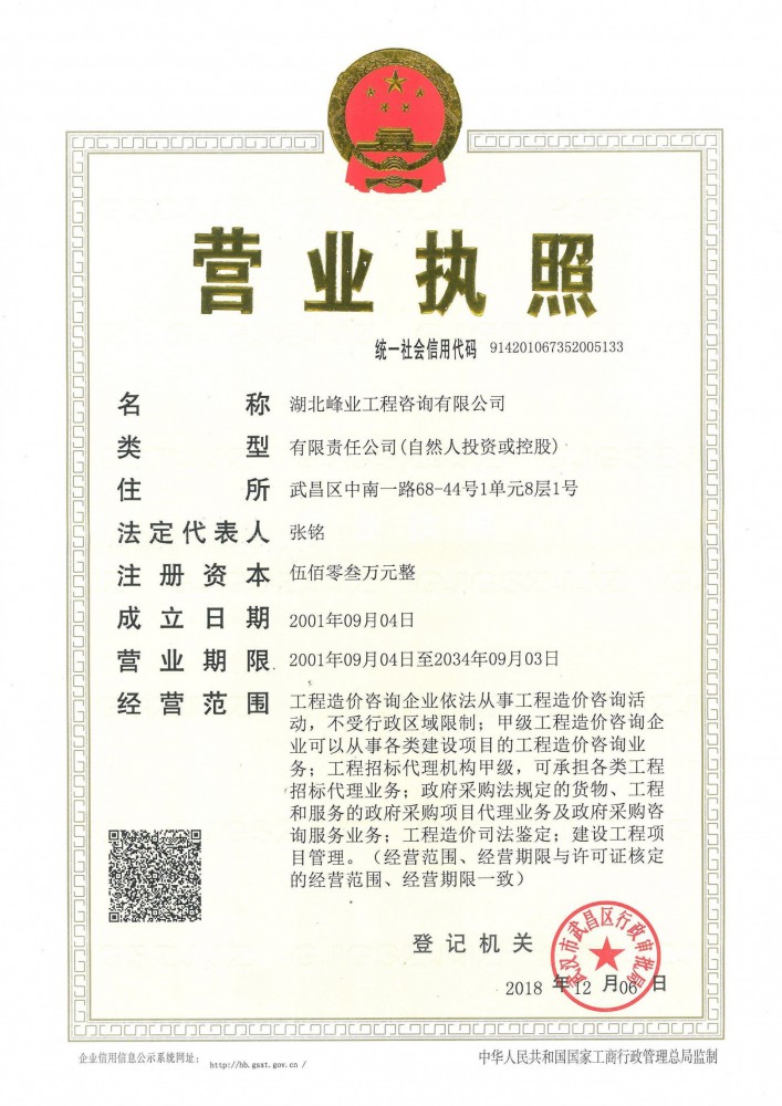 湖北峰業(yè)工程咨詢有限公司,成立于2001年9月,注冊資金500萬元,是中華人民共和國住房和城鄉(xiāng)建設(shè)部批準的甲級工程造價咨詢企業(yè)和甲級招標代理機構(gòu)及湖北省財政廳批準的乙級政府采購代理機構(gòu),公司現(xiàn)有專職員工55人,其中高級職稱6人,中級職稱12人,國家注冊造價工程師10人。