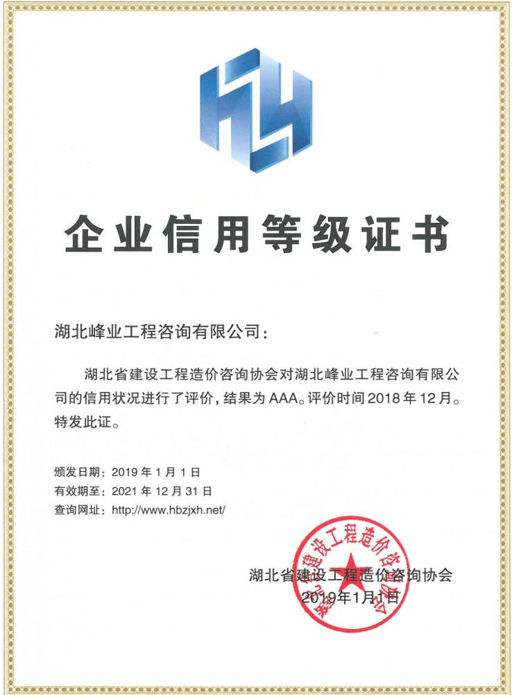 公司擁有強大的技術(shù)、管理、服務(wù)力量,在發(fā)展過程中不斷加強公司制度化、規(guī)范化、標準化建設(shè),恪守“以質(zhì)量求生存”“以信譽求發(fā)展”,我們堅持獨立、公正、科學(xué)的原則,恪守職業(yè)道德,嚴謹工作。一份耕耘一份收獲, 2010年公司榮獲湖北省建設(shè)廳“先進造價咨詢單位”稱號;2011、2013年連續(xù)兩次榮獲湖北省工程造價咨詢企業(yè)AAAA信用等級;2010、2011、2012連續(xù)三個年度榮獲武漢市工商行政管理局“守合同重信用企業(yè)”稱號。